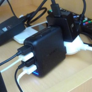 ノートPC、iPod touch、タブレット、WiMAX(レンタル)、スマホ、Bluetoothイヤフォンと5つの電源が必要なためw