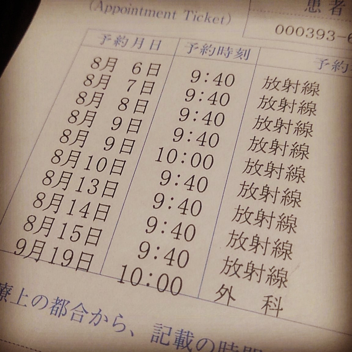 予約券の最後の欄に、9月の外科の検診が出てきた!